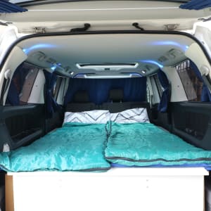 The Alphard features 4 or 5 seats and sleeps 2 people in a class-leading size bed. There is an optional tent extension that sleeps a further 2 people. Each camper contains an amenities crate of cooking utensils including saucepans, a gas stove, washing bowl and crockery, cutlery, etc - all you will need for a camping trip. Optional Extras include Bike Rack, Drive away Awning , Extra chairs & Tables see the list for all the items Also included are 2 deck chairs, cooler fridge, onboard Sat Nav + DVD system. Hire the Toyota Alphard and enjoy your British or European adventure!
