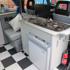 Hark back to a bygone era of bold lines, styles and colours, before wind tunnels and when synth music was uber cool. In the 1980s, a VW T25 Westfalia was THE van to have. It’s important to note that while all our T25’s are well preserved and are very well looked after mechanically, these are historic vehicles – they’re not brand new, not refurbished from shell upwards (they’re just honest well-preserved examples) and nor do they drive like a modern car. T25s are generally reliable and lots of fun most of the time but for those customers who want refinement and need cast iron dependability (particularly if covering larger distances), we'd suggest opting for one of our VW T5s. If you’re happy to take the slow lane, enjoy the retro feel, up for more of a driving challenge and can bear the odd imperfection you have to expect from a 30+-year-old vehicle, the T25 remains a great option with oodles of personality (and you’ll be part of a special club where everyone waves and stops to speak to you)! Detailed specification: * Removable kitchen unit which can be used inside or outside the van, which features 2 hob gas stove, 3-way fridge (runs of gas, battery or mains hookup), sink and running water * Electric hookup with interior plug socket (charge your phone/watch the laptop!) * 2 full-size double beds (one rock and roll double bed downstairs, another full-width double in the expanding roof) * Super comfy captains seats with armrests * Poptop roof so you can stand up inside at night, but drive with ease in the day * Very large interior space * Fold-away table top * All round curtains * Valuables safe * Upmarket remote control DVD/CD/MP3 sat nav sound systems (with iPod input)